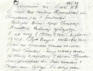 Notes: Abridged letter is published in 33: holod. Narodna Knyha-Memorial book, Kyiv: Radiansky pysmennyk, 1991, p. 407.