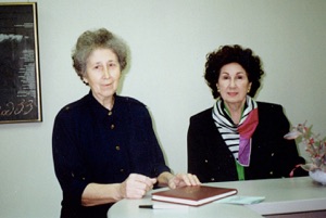 Daria Husiak (left), former UPA member and Roman Shukhevych’s courier after being interviewed by Iryna Moroz. 31.03.1993