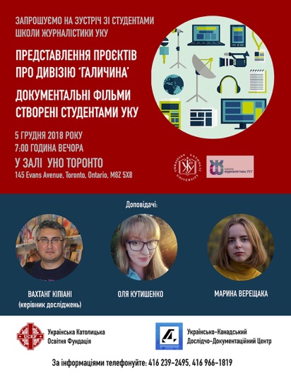 Two students, Olia Kutyshenko and Maryna Vereshchaka, from the School of Journalism at the Ukrainian Catholic University in Lviv, Ukraine arrived at UCRDC for four weeks of research with their research director, Vakhtang Kipiani, on the Ukrainian Division "Halychyna."