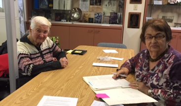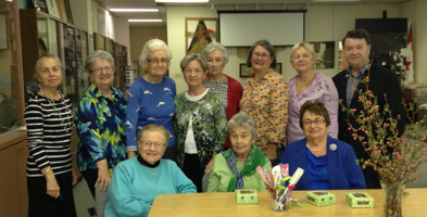 Dr. Marta Kebalo, Martha Kebalo, (at centre in photo) is the World Federation of Ukrainian Women’s Organizations (WFUWO | СФУЖО | WFUWO at the UN ) Main Representative to the United Nations Economic and Social Council (UN ECOSOC). She visited UCRDC on Wednesday, March 27. Dr. Kebalo met with UCRDC Archivist Iroida Wynnyckyj and UCRDC volunteers.